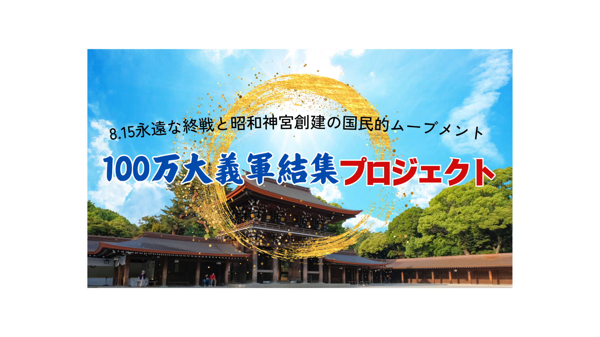 今ここ「8.15永遠な終戦」のリテラシーによって日本のプライド・自信感・勇気が呼吸を始める、「永遠な終戦」のシンボルとして「昭和神宮」創建へ100万人結集を目指し、国民的ムーブメントを展開していきます。